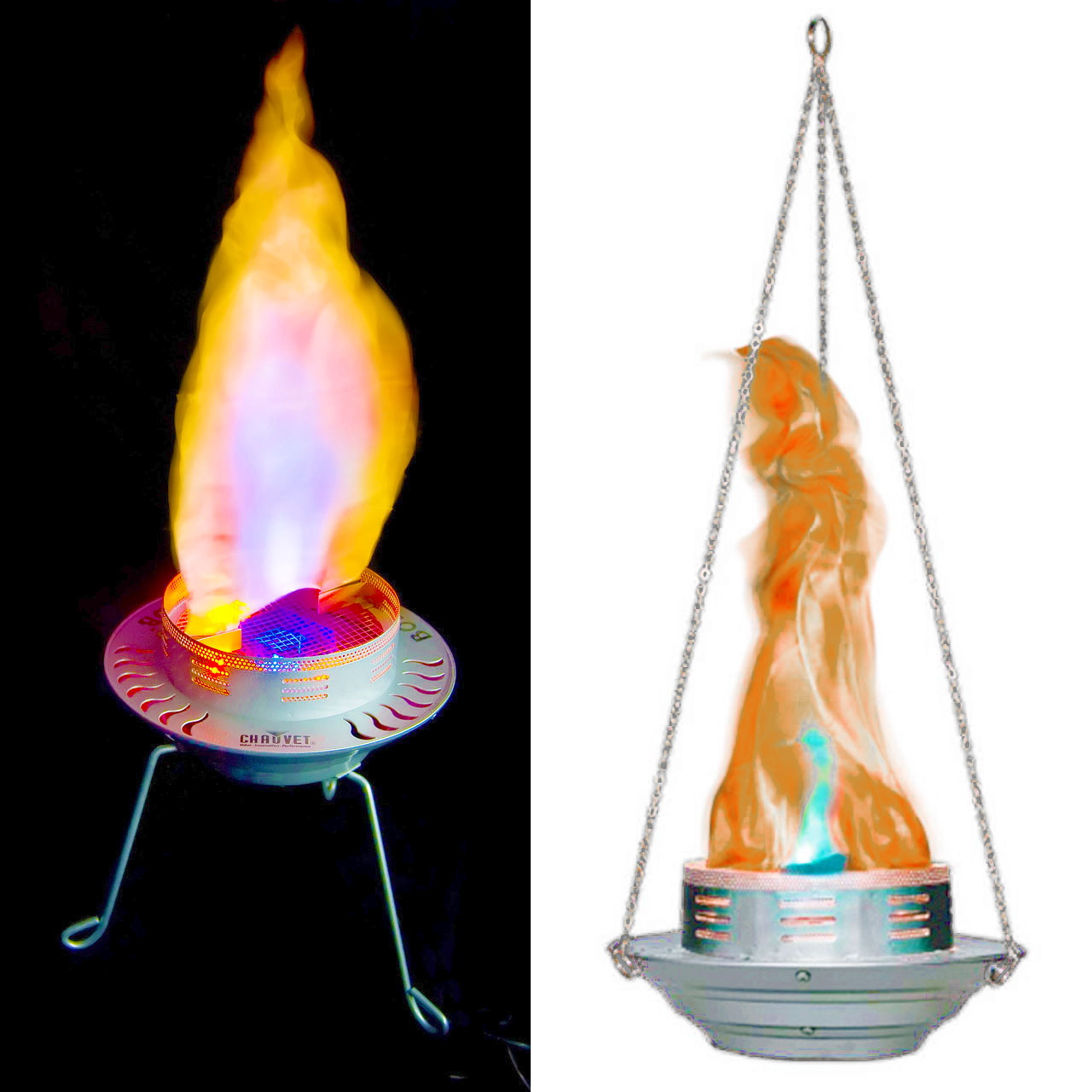 While there’s no heat or flame, the Chauvet Bob LED simulates a flame that sure looks real. The effect is created by 54 orange and 12 blue LEDs. Continuous operation means the Bob LED has no duty cycle. Chauvet includes 3 tripod legs for stand support and a chain for suspending The Bob LED flame from a ceiling or lighting bar.