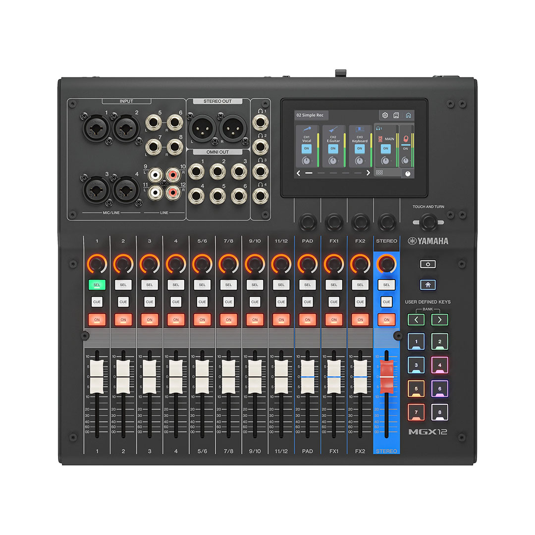 The Yamaha MGX12 Digital Mixer continues the trusted legacy of the MG series by combining professional sound quality with modern digital flexibility. Featuring an intuitive touchscreen interface, non-motorized faders, and powerful onboard DSP, the MGX12 is designed for fast setup and confident operation. With extensive I/O, multitrack USB and SD recording, Bluetooth connectivity, and advanced assistive mixing tools, this mixer is an ideal solution for live performance, studio recording, streaming, and installed sound environments.